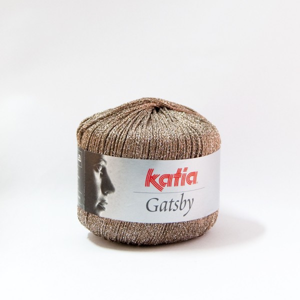 Gatsby de Lanas Katia, 77% viscosa,15% poliamida, 8% poliéster metalizado, agujas 3-3,5, ovillos de 50gr, 118m, lavar a mano.