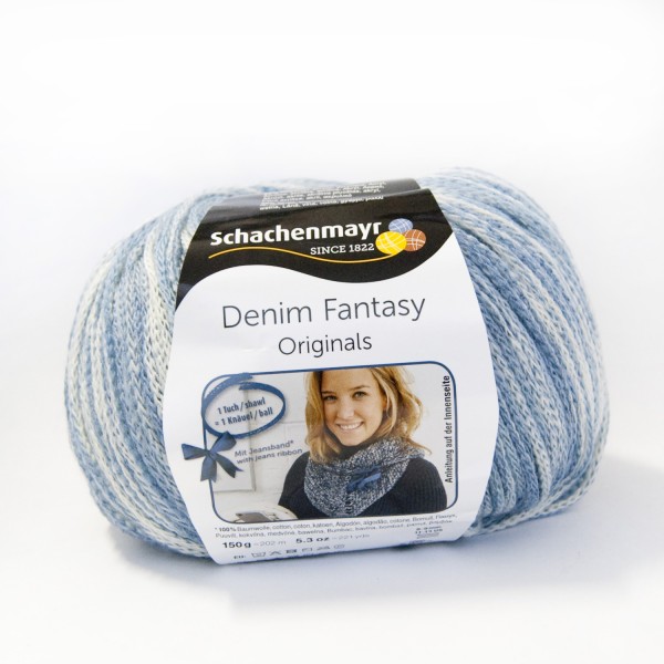 Denim Fantasy Originals de Lanas Schachenmayr, 20% lana, 80% acrílico, agujas 8-9, ovillos de 150gr, 202m, lavable en lavadora a 30º.