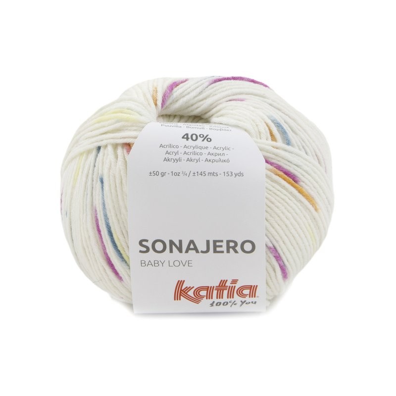 Hilo blanco con motas de color Sonajero.